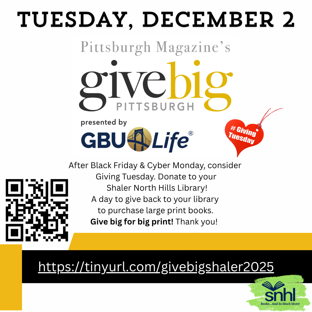 The latest news from your Shaler North Hills Library! Keep scrolling for more programs and events.