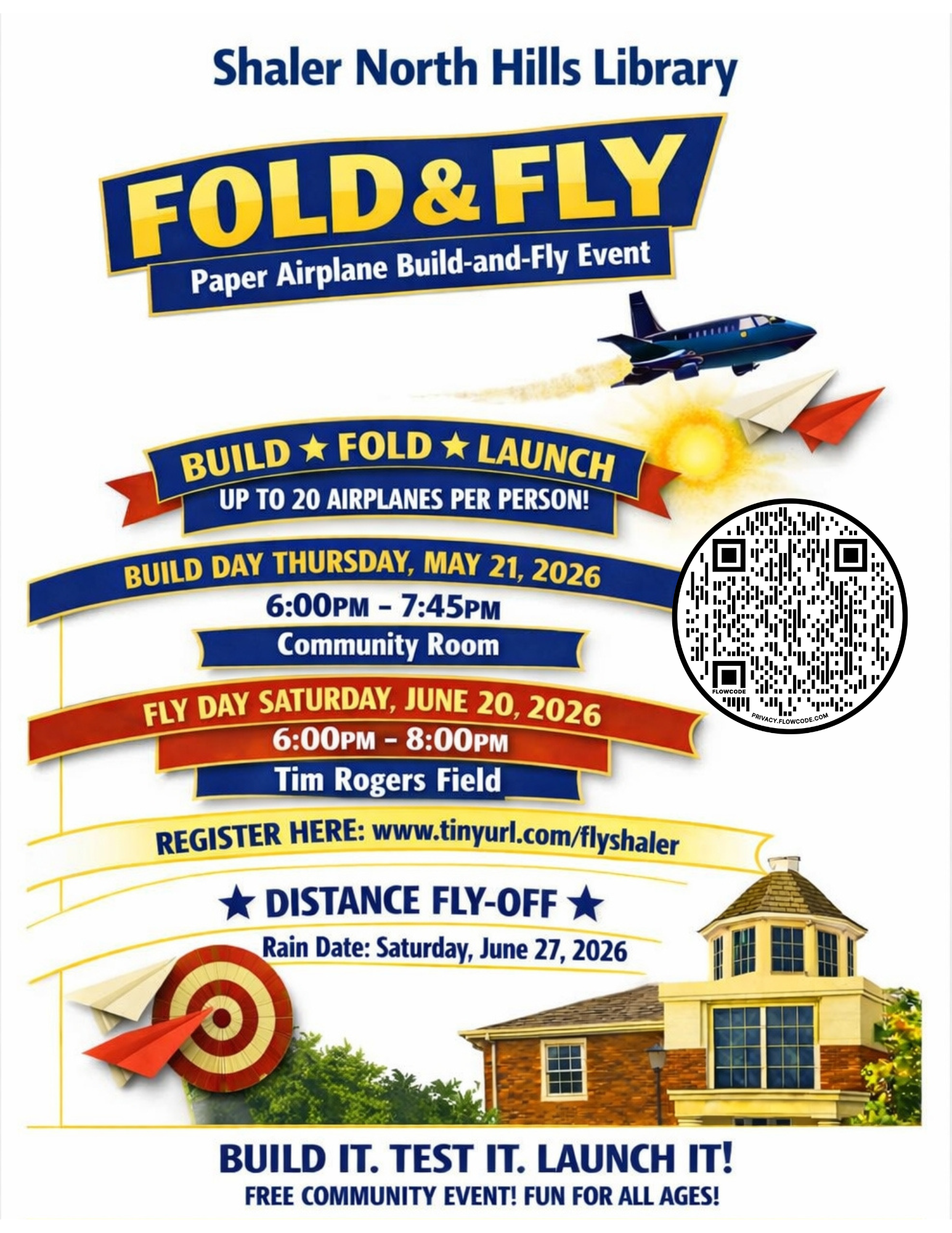 Join us in the community room for tips and tricks on building your paper airplanes for our first annual Fold and Fly event. No registration for this program. All ages welcome. Free! Fly Day is Saturday, June 20 at 6PM at Tim Rogers Field. Free, but register.